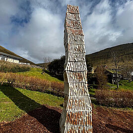 Undirvísingargongd: Vit arbeiða við standmyndini "Karyatida" hjá Guðrið Poulsen. "Karyatida", ið er staðsett í Miðstaðarlundini í Fuglafirði, er eitt minnismerki til heiðurs fyri kvinnur, sum doyðu í barsilssong. Standmyndin er ein súla...